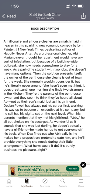 Trabalhando como faxineira, Abi Mariano nunca imaginou que seu apartamento teria qualquer tipo de infestação mas, devido a um surto no prédio inteiro, agora ela precisa de um lugar para ficar por uma semana. Como estudante de meio-período com dois empregos, ela não tem muitas opções. Então, a solução se apresenta: o proprietário da cobertura que ela limpa está fora da cidade esta semana. Normalmente, ela não consideraria isso, mas ele literalmente nunca está em casa (ela nunca encontrou com ele). Está dando tudo certo… até que, numa manhã, ela encontra dois estranhos na cozinha. São os pais do dono da cobertura e eles parecem achar que já ouviram falar muito de Abi – não como empregada do filho, mas como namorada dele. Declan Powell sempre colocou a carreira em primeiro lugar, trabalhando para subir de cargo na empresa, mas ainda está de olho na próxima promoção. Quando os pais mencionam que encontraram “Abby”, a namorada dele, ele engasga com o escargot. Embora pareça maravilhoso que ela tenha sido muito simpática, na verdade, ele não tem uma namorada – ele inventou isso para tirar todo mundo do pé dele. Quando Dex descobre quem realmente é Abi, ele faz uma proposta a ela: fingir namorar com ele, e ele dará tudo o que ela precisar durante o curto período desse acordo. Que mal isso pode fazer? São apenas negócios, não prazer… não é?